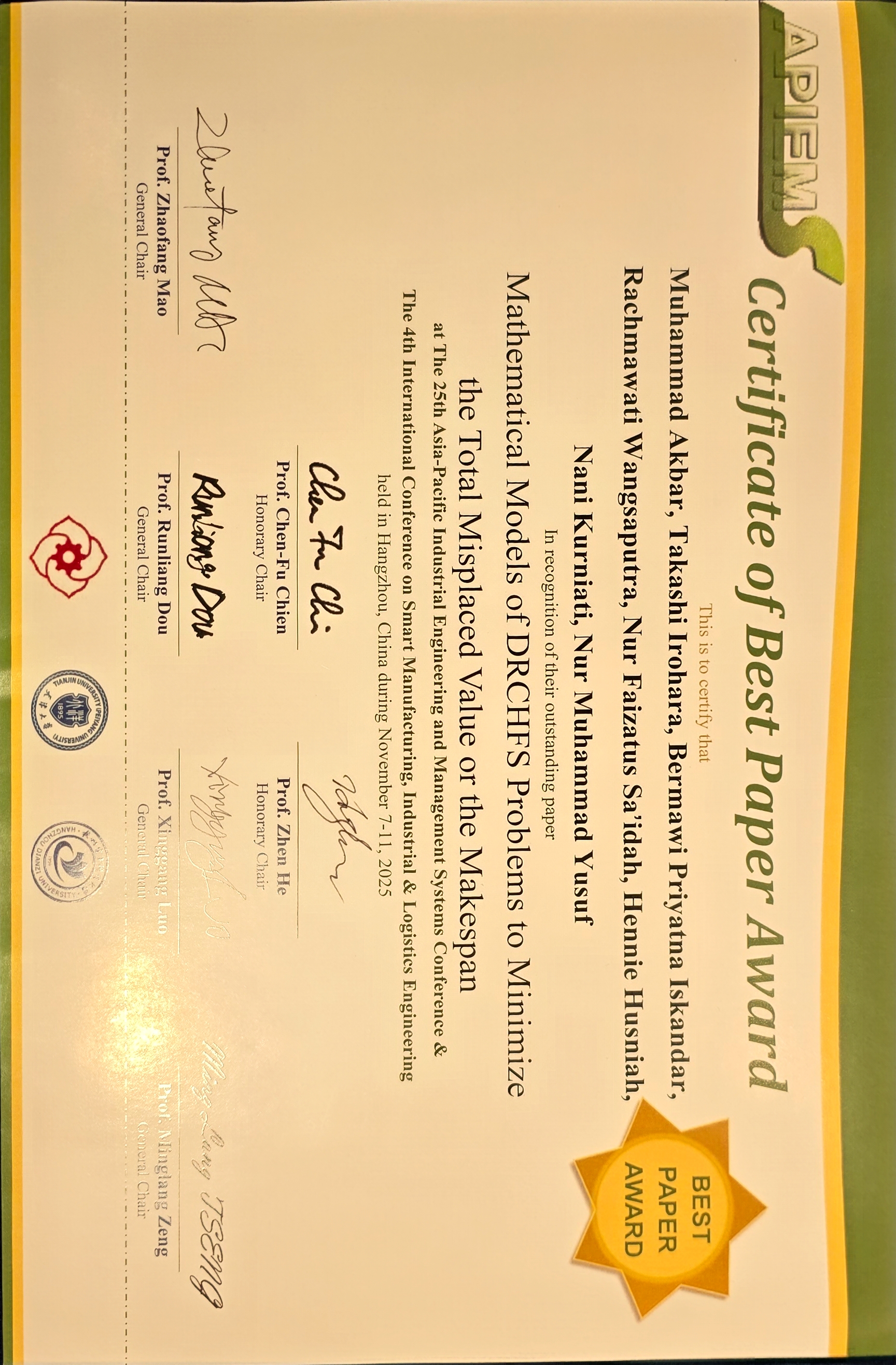 2025”N11ŒŽ8“úFBest Paper Award, Asia Pacific Industrial Engineering and Management System Conference (APIEMS 2025), Hangzhou, China