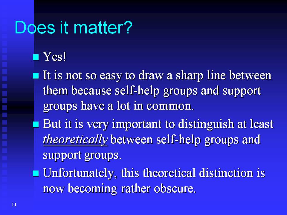 So, the next question: why is it important to distinguish between self-help groups and support groups?